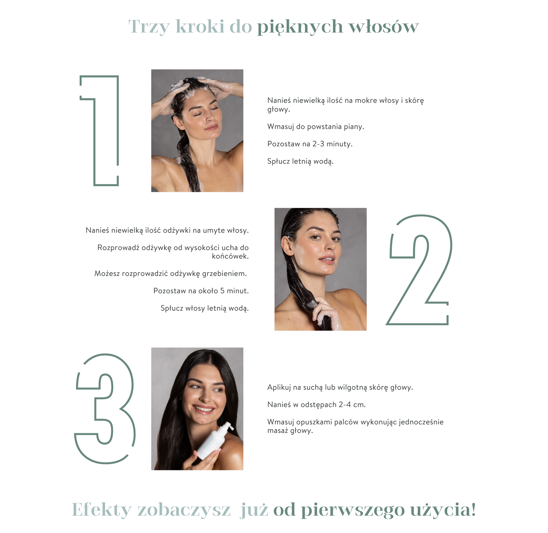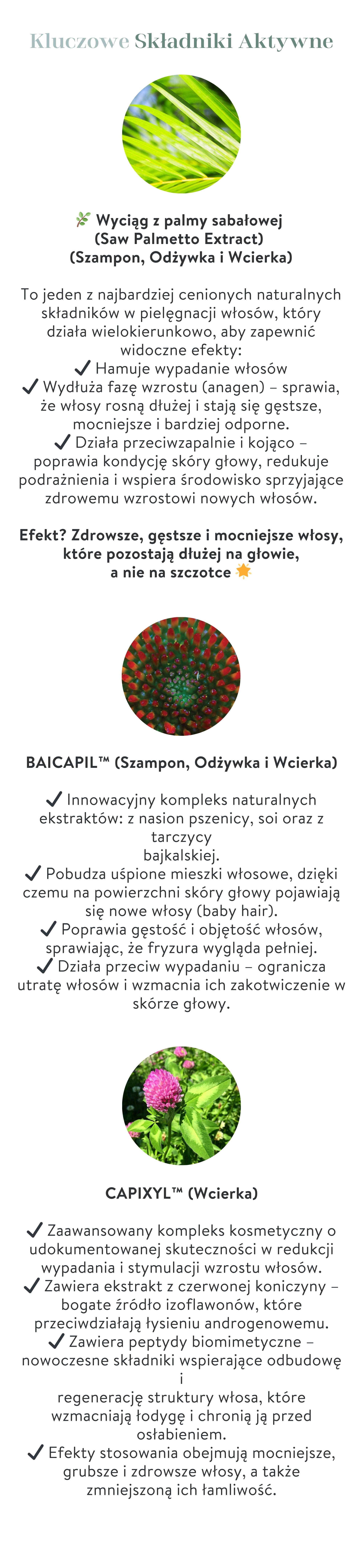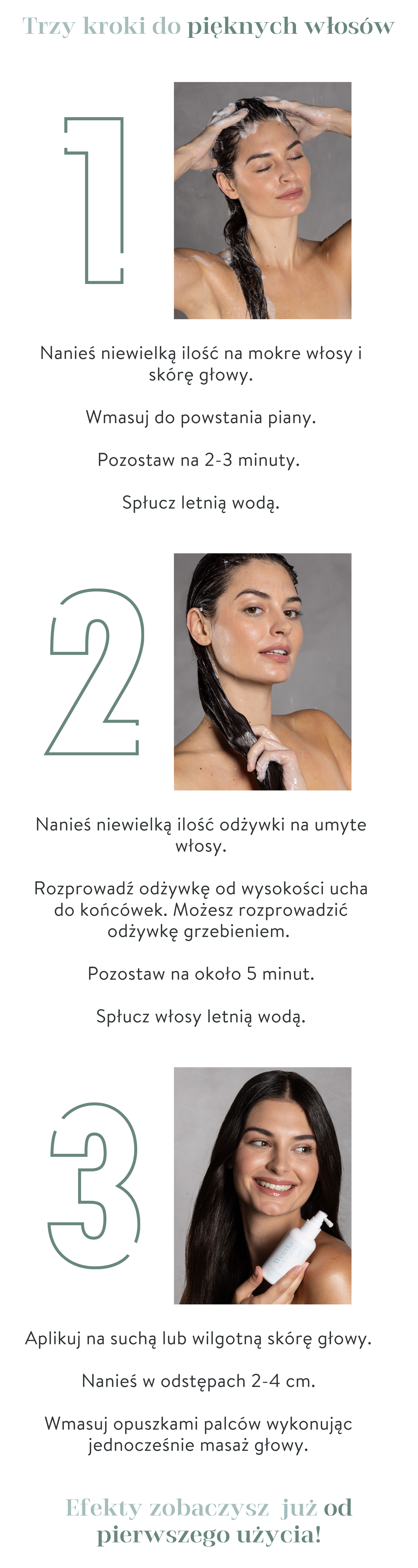 Brak mi słów na nowy zestaw — szampon, odżywka i wcierka — naprawdę! 😍 Nigdy nie miałam tak dobrych kosmetyków do włosów, a testowałam już wiele różnych, również tych kupionych w salonach fryzjerskich. Mam cienkie włosy, które muszę myć codziennie. Wszystkie wcierki i olejki odpadały, bo moje włosy od razu robiły się tłuste. Wasz zestaw sprawił, że moje włosy są uniesione, lekkie i świeże. 💫 Już jestem fanką tych produktów! Ceny nie są z kosmosu, a kosmetyki są naprawdę wydajne. 👌