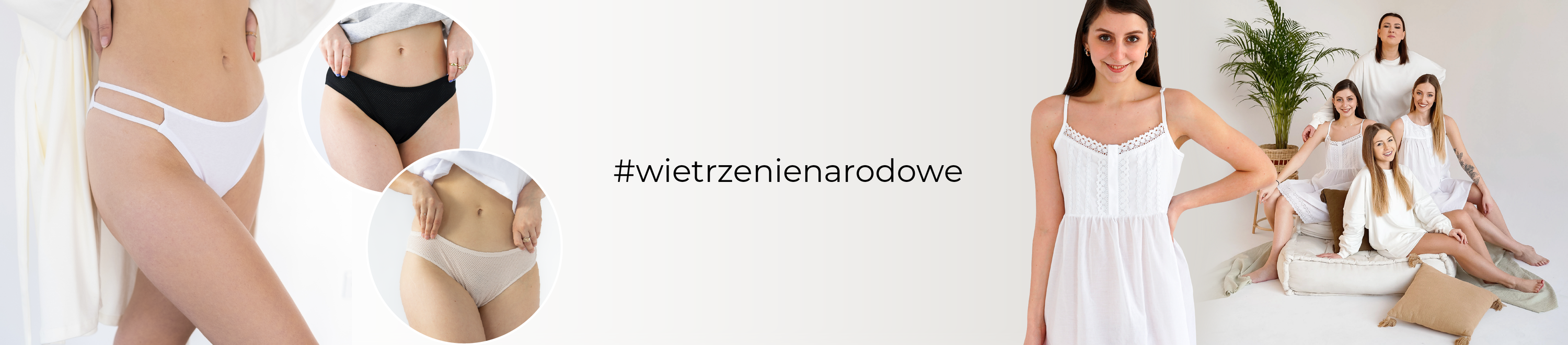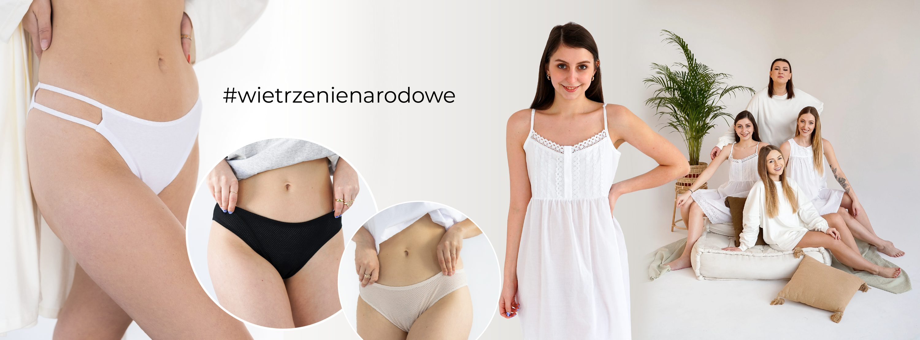 Ale Wietrzenie Narodowe to nie tylko pierwszy krok do poprawy samopoczucia, a tym samym rzadszych wizyt u ginekologa, ale również wielki przełom w firmie Roger Publishing. W 2018 roku, w roku zorganizowania akcji, do sprzedaży zostały wprowadzone majtki, piżamy i koszule nocne uszyte z przyjemnej i przewiewnej 100% bawełny, które z miejsca pokochały wszystkie Polki! Bielizna pod szyldem #wietrzenia narodowego, starannie opatrzona metką zewnętrzną to do tej pory bestsellerowe produkty firmy.