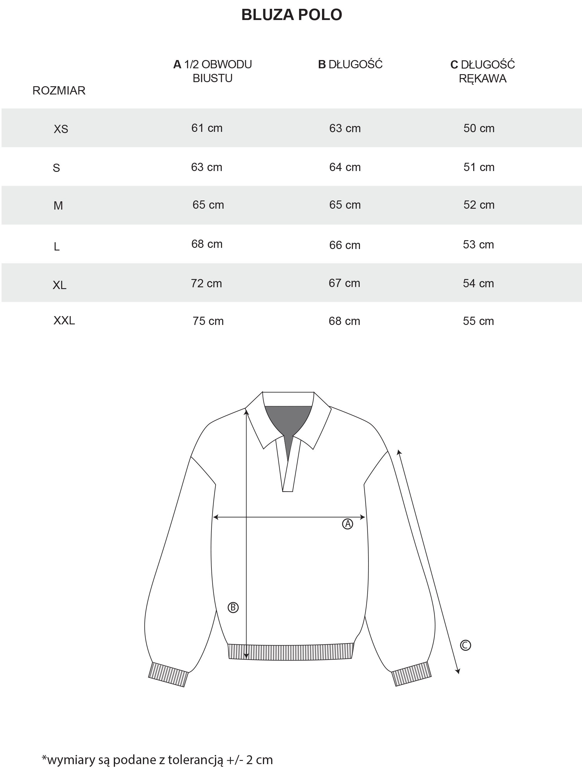 Bluza o luźnym kroju wykonana z miękkiej dzianiny. Ma długi rękaw i kołnierzyk polo.