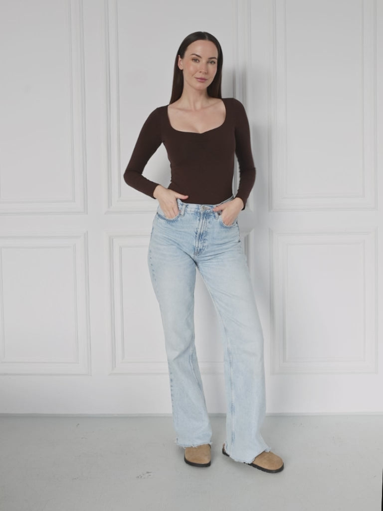 Dopasowane body uszyte z gładkiej, wiskozowej dzianiny z dodatkiem elastanu z marszczeniem na dekolcie.