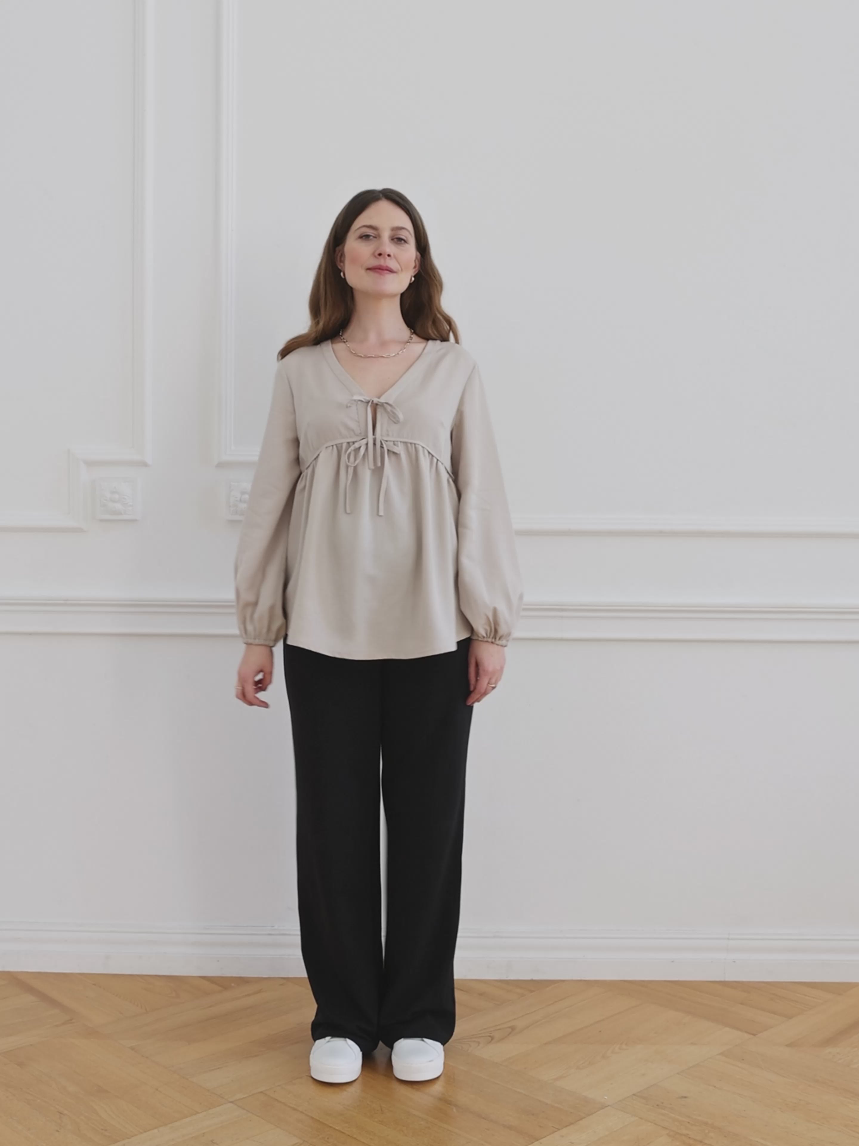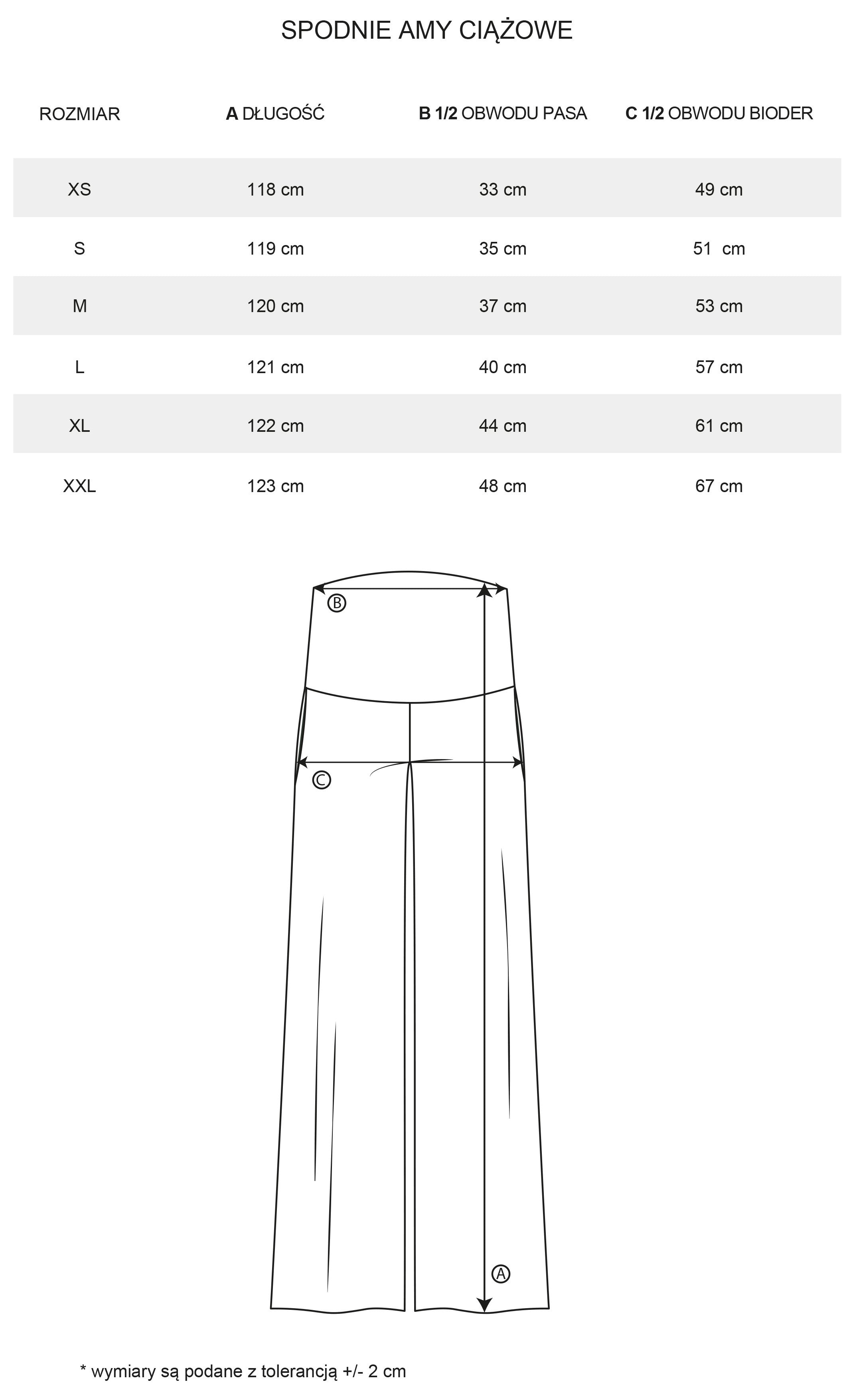 Spodnie ciążowe o luźnym kroju z prostymi nogawkami.