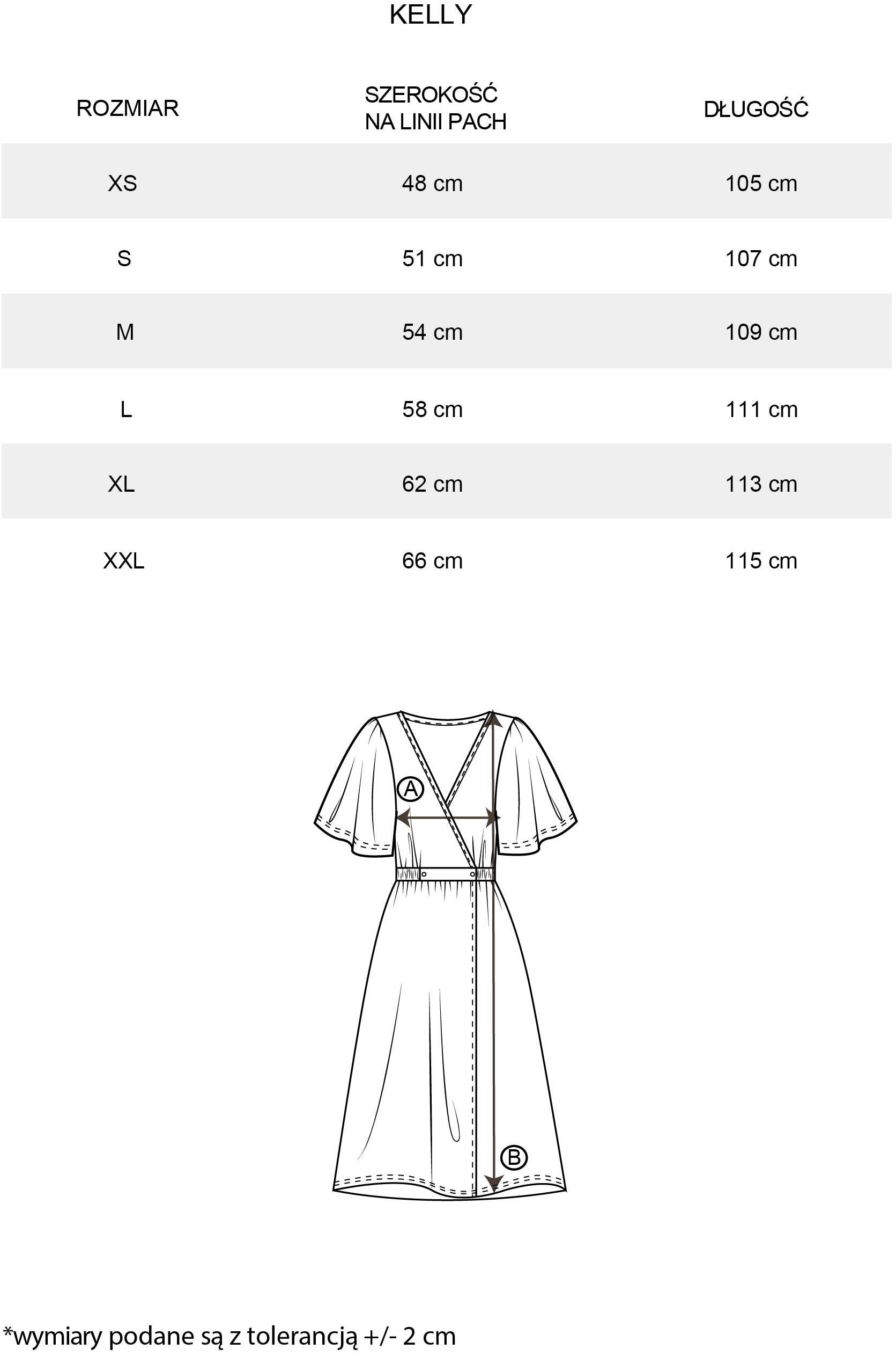 Koszula do porodu uszyta z dzianiny bawełnianej. Ma kopertowy dekolt oraz gumkę w talii.