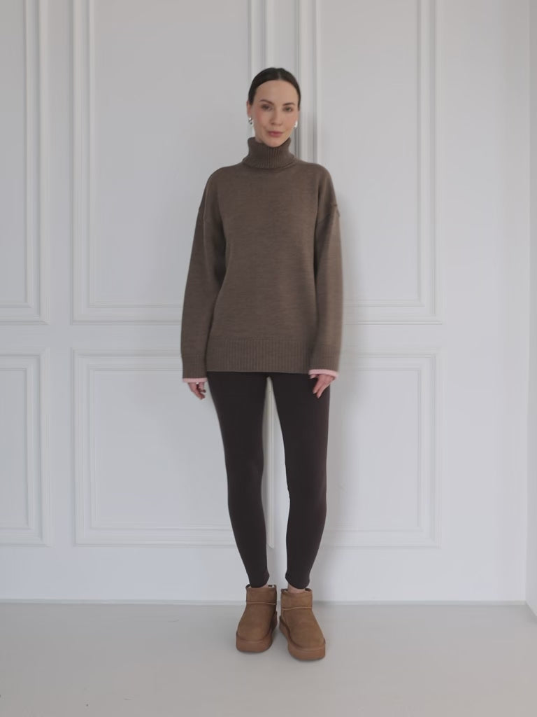 Legginsy uszyte z ciepłej, miękkiej dzianiny. Mają szeroką gumę w pasie, wysoki stan i bezszwowy krok.