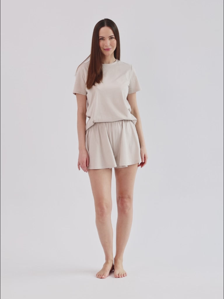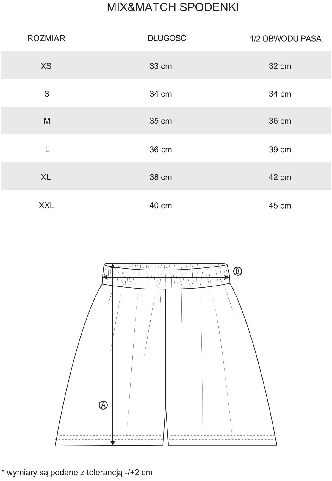 Spodenki damskie uszyte ze 100% bawełny. Mają szerokie, krótkie nogawki i gumkę w pasie. Wyglądem przypominają spódniczkę.