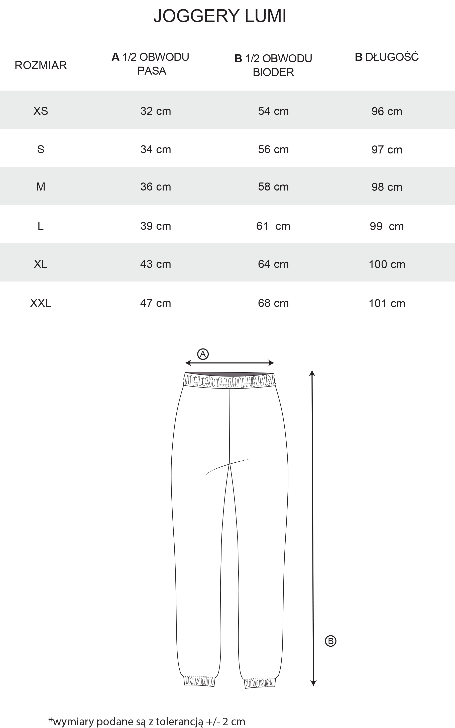 - nogawki zakończone gumą