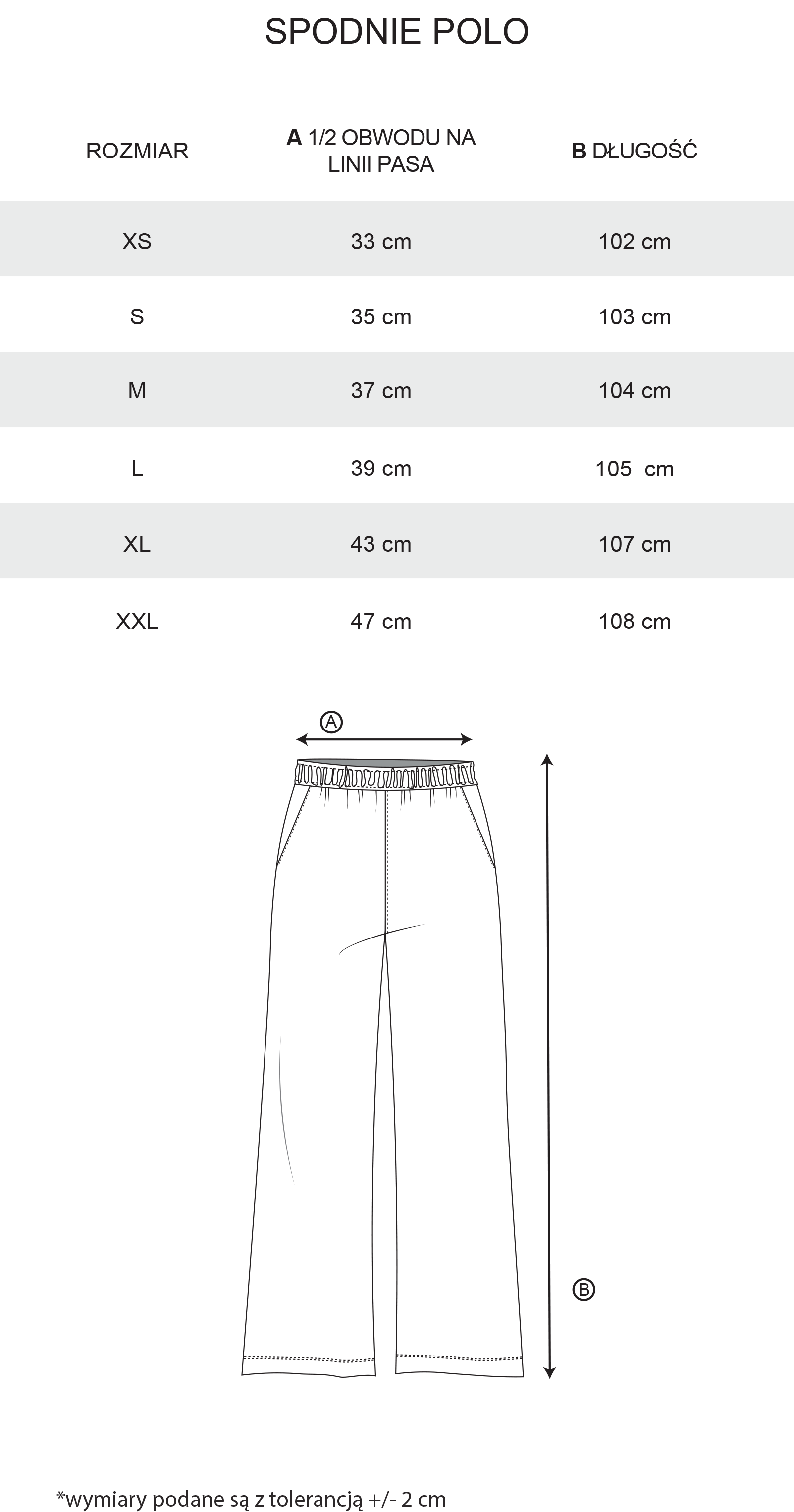 Spodnie wykonane z miękkiej dzianiny z szeroką nogawką i kieszeniami. Mają gumkę w pasie oraz karczek z tyłu. Dostępne również w wersji long.
