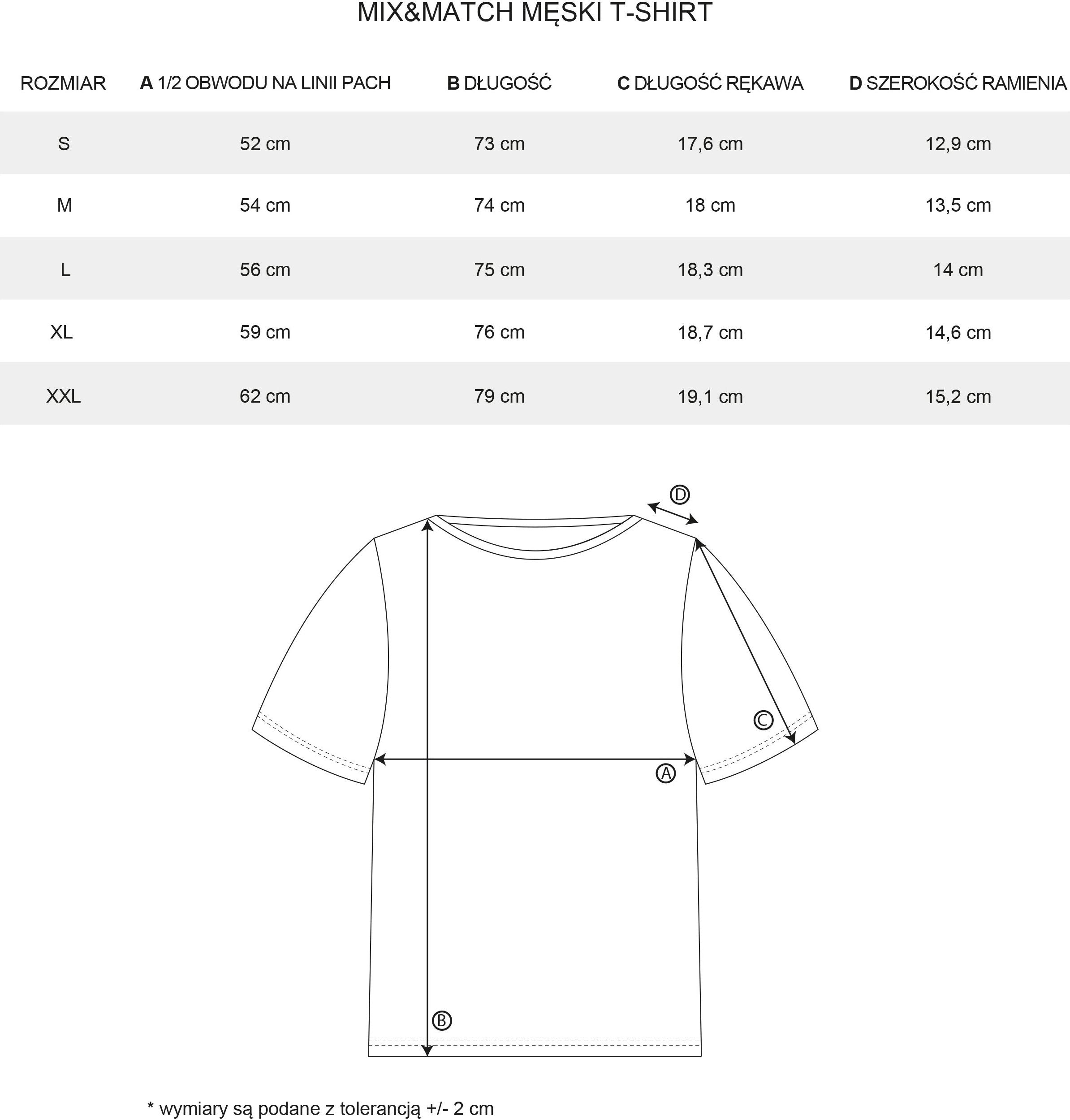 T-shirt męski z krótkim rękawem uszyta ze 100% bawełny. Ma dekolt w łódkę i luźny krój.