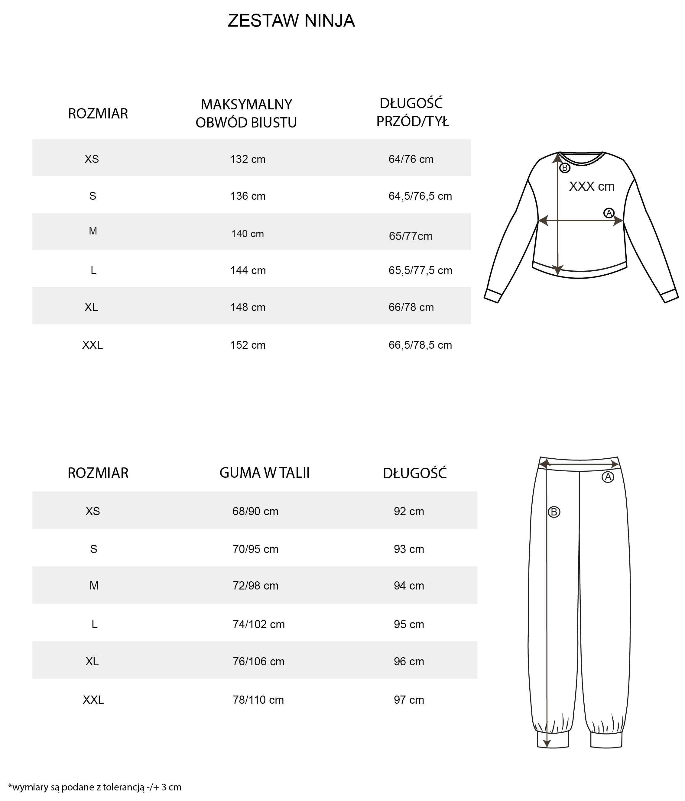 Dresy damskie bawełniane Ninja serek składające się z długich spodni i luźnej bluzki. Góra ma długi rękaw i dekolt w literę V, a dół wysoki stan i szeroki ściągacz na dole nogawki. Krój spodni podobny jest do legginsów, a góra ma oversizeowy fason.